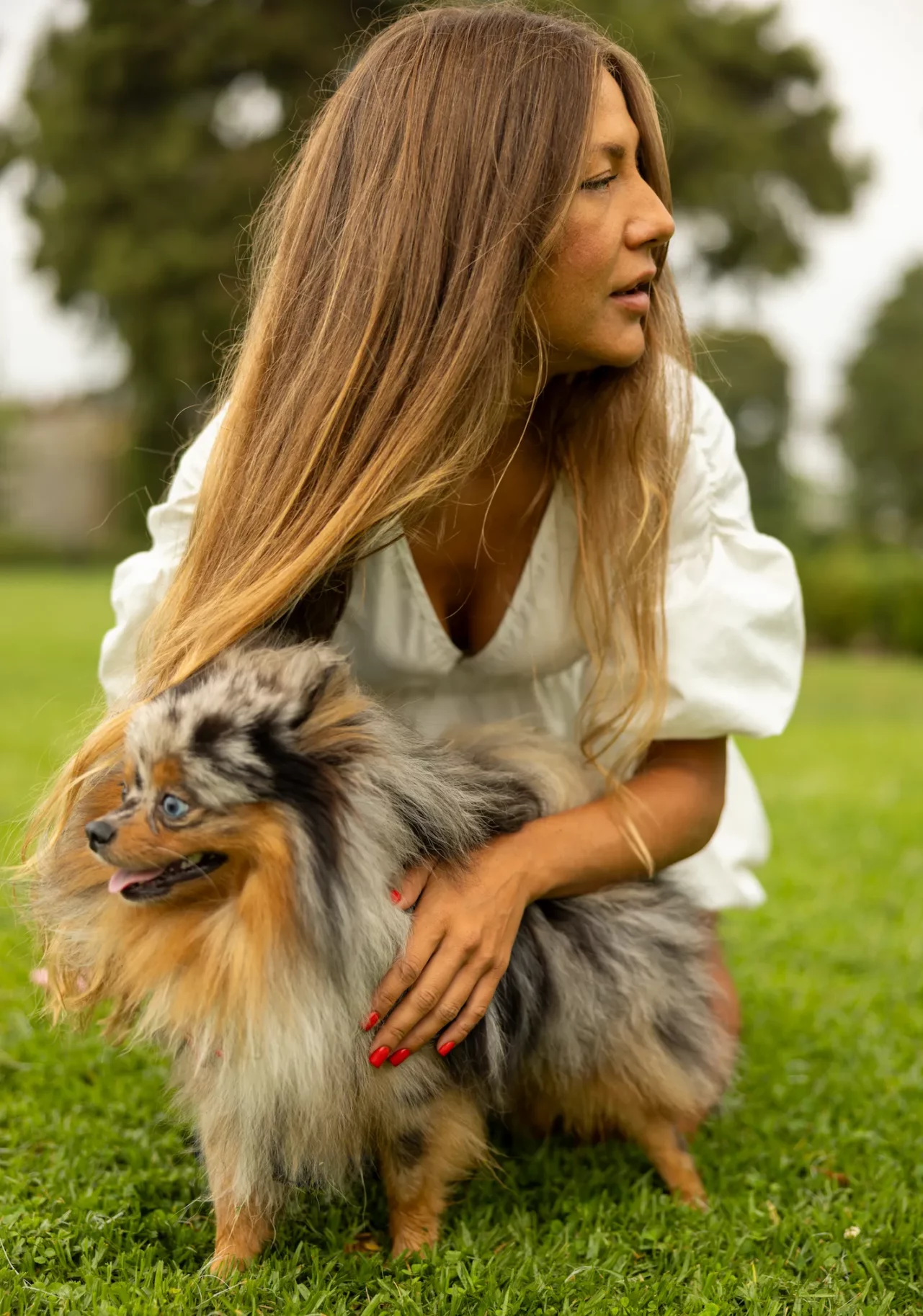 Brandon Walsh may not have shown up for this photoshoot at Beverly Hills Park in Los Angeles… But, to be honest, he probably wouldn’t have outshone the smile of the lovely Alicia and her adorable dog. Instead of racing through life like a locomotive, they were savoring each moment. Unlike our favorite movie character, always chasing adventure, Alicia and her fluffy friend created a true idyll!